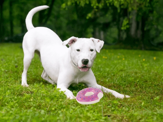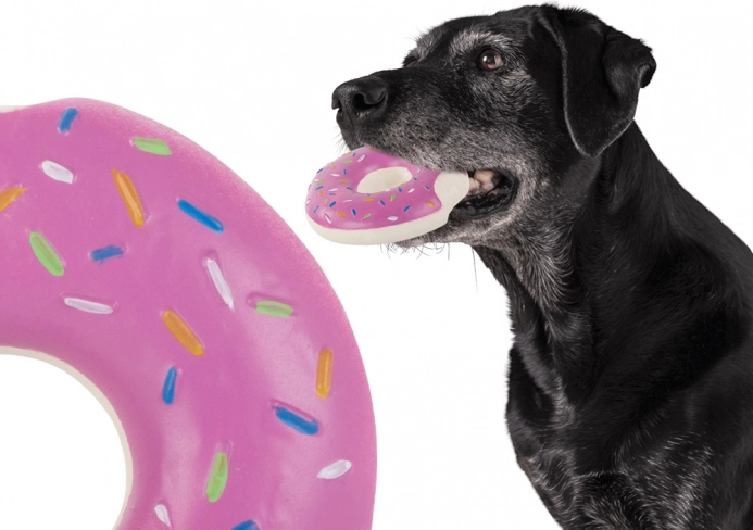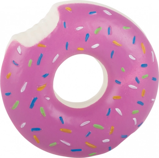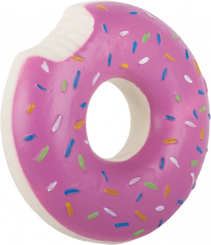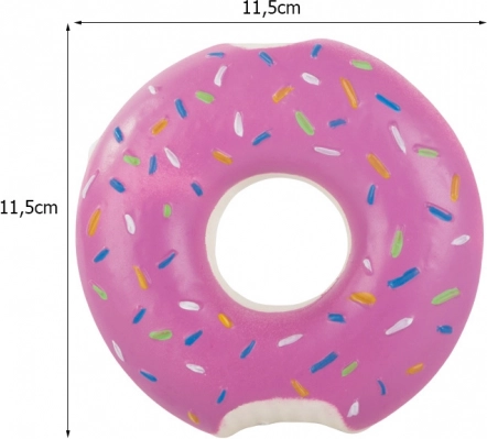 De rubberen donut met kleurrijke “strooisels” is een geweldig interactief speeltje voor honden van alle formaten. Dankzij de ingebouwde pieper prikkelt het de natuurlijke jachtinstincten en motiveert het tot langer spelen. Het compacte formaat van 11,5 cm ligt prettig in de bek en laat zich goed werpen.