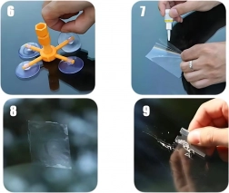 De werkwijze is eenvoudig: maak het glas schoon, zuig de applicator vast, injecteer de hars, druk de lucht eruit, dek af met folie en laat uitharden in de zon of met een UV-lamp. De set is ideaal voor eigen gebruik en geschikt voor elke zorgvuldige automobilist.