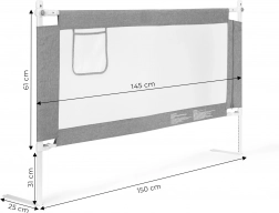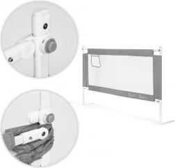 Het universele bevestigingssysteem vereenvoudigt de installatie op verschillende bedtypen en de mogelijkheid om meerdere panelen te koppelen creëert een beschermde zone rondom het bed. De duurzame combinatie van staal, PP en hoogwaardige stof garandeert stabiliteit en eenvoudig onderhoud – de hoes is afneembaar en wasbaar.