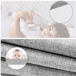 Dit bedhek voor kinderen is ontworpen voor veilig en rustig samen slapen. Dankzij het verstelbare hoogtebereik past het zich eenvoudig aan de meeste matrassen en bedden aan. Het ademende gaas zorgt voor ventilatie en zicht op het kind, terwijl de neerklapbare bovenlijst snelle toegang mogelijk maakt zonder het hele hek te hoeven demonteren.