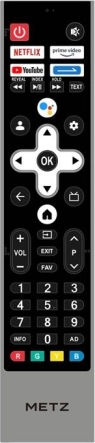 De afstandsbediening biedt een overzichtelijke indeling van de knoppen voor snelle toegang tot favoriete apps zoals Netflix, YouTube en Prime Video.
