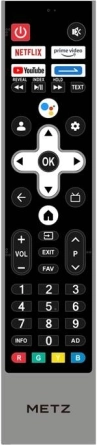 Bedien je METZ-televisie eenvoudig en snel met de slimme afstandsbediening met knoppen voor streamingdiensten zoals Netflix en YouTube.