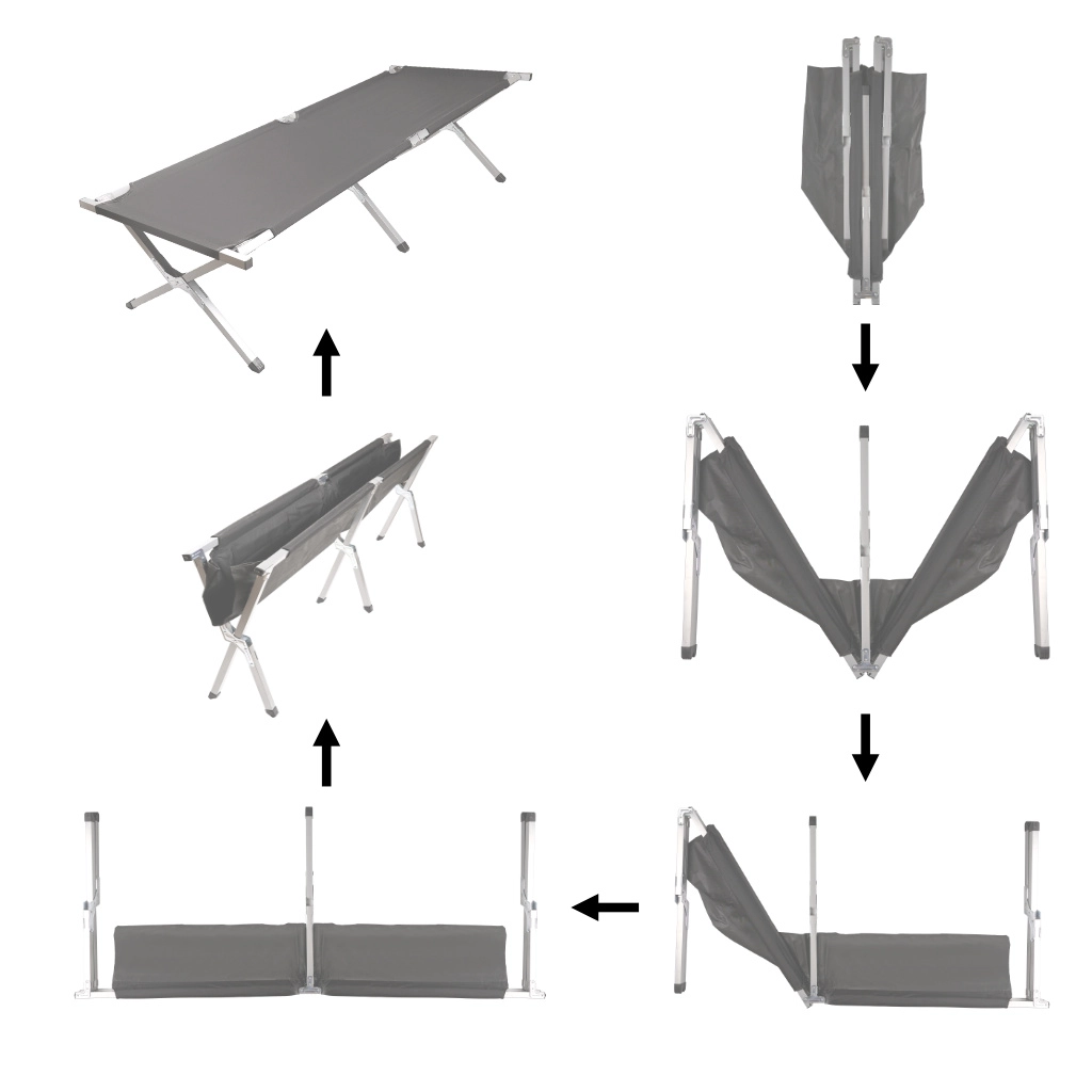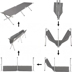 Het mechanisme maakt het mogelijk het bed in enkele seconden uit te klappen en op te vouwen tot een klein pakket dat in de kofferbak of kast past.