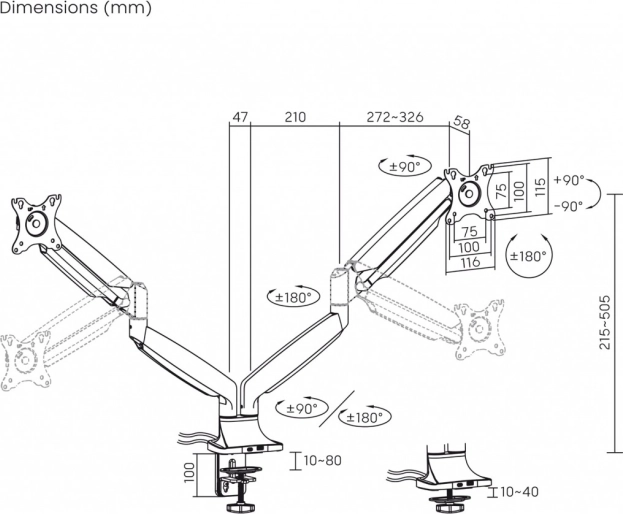 Stel de ideale positie van je monitoren in dankzij kantelen −15°/+15°, draaien ±90° en de mogelijkheid om te roteren naar portretmodus. De gasveer zorgt voor soepele hoogteverstelling zonder moeite.