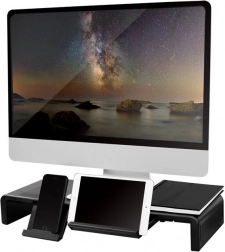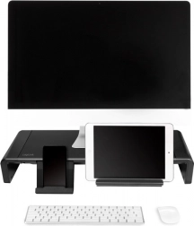 De ergonomische monitorstandaard brengt het scherm op de ideale hoogte, waardoor nek- en rugbelasting afneemt en je houding verbetert. De verstelbare breedte van 420/470/520 mm laat je de ruimte precies afstemmen op je behoeften en benut het bureaublad efficiënt.