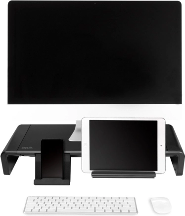 Creëer een comfortabele en overzichtelijke werkplek met een monitorstandaard met een draagvermogen tot 25 kg. Dankzij de inklapbare constructie pas je de breedte eenvoudig aan naar 420 / 470 / 520 mm. Een praktische lade en geïntegreerde houder voor smartphone en tablet houden je bureau perfect opgeruimd, terwijl je je toetsenbord en muis onder de robuuste kunststof‑metalen standaard kunt opbergen.