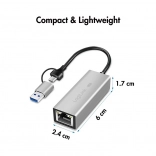 Krijg een stabiele en ultrasnelle 2,5G Ethernet‑verbinding voor vloeiende videogesprekken, streaming en snelle bestandoverdracht. De praktische 2‑in‑1 USB‑A/USB‑C‑poort zorgt voor brede compatibiliteit met pc’s, laptops, tablets, iPads, MacBooks en gameconsoles PS4, PS5, Nintendo Switch, Steam Deck, en apparaten zoals TV‑boxen of Dell XPS.