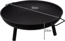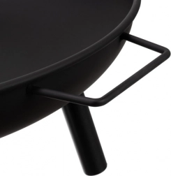 Geniet van avonden bij open vuur met deze elegante zwarte vuurplaats, die uitblinkt in bestendigheid tegen hoge temperaturen en lange levensduur. Twee zijdelingse handgrepen maken veilig verplaatsen mogelijk, en de driepoot met beschermende uiteinden zorgt voor stabiliteit op diverse ondergronden.