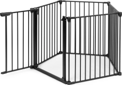 Het veiligheidshek beschermt kinderen tegen toegang tot gevaarlijke plekken zoals trappen of keukens. Het maakt vrij bewegen binnen een veilige zone mogelijk zonder constante supervisie.