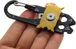Ontdek het universele toeristische gereedschap dat u in elke situatie helpt. Met zijn 20 verschillende functies wordt het uw onmisbare metgezel bij reizen, kamperen of dagelijks gebruik. Van flesopener tot mini koevoet, deze karabijnhaak kan alles aan!