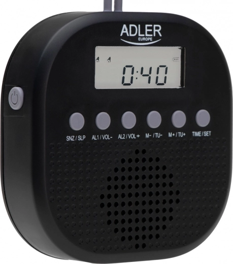 De compacte en stijlvolle waterdichte radio ADLER AD 1912 met IPX4-certificering is ideaal voor onder de douche, op uitstapjes en voor dagelijks gebruik. Biedt FM-radio, een duidelijke digitale tijdweergave, twee onafhankelijke wekkers, een praktische snooze-/timerfunctie van 10–90 min en batterijvoeding voor maximale mobiliteit. Dankzij de flexibele siliconen lus hang je hem gemakkelijk op waar je maar wilt.