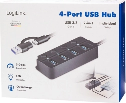 Profiteer van bliksemsnelle gegevensoverdracht tot 5 Gbit/s via USB 3.2 Gen 1-poorten. Ideaal voor grote bestanden, video’s in hoge resolutie en veeleisende applicaties. Elke poort heeft een eigen schakelaar, zodat je apparaten selectief kunt in- of uitschakelen zonder invloed op de rest. Een LED-indicator toont in één oogopslag de status van elke poort. Inclusief 5 V/3,5 A (17,5 W) voedingsadapter voor stabiele voeding, ook voor veeleisende apparaten.