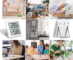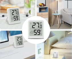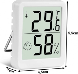 Houd een gezond en comfortabel binnenklimaat met deze mini-thermometer en -hygrometer. Het grote, goed leesbare LCD‑display toont de actuele temperatuur en de relatieve luchtvochtigheid, terwijl een smiley direct aangeeft of de omstandigheden optimaal zijn. Ideaal voor slaapkamer, kinderkamer, kantoor, kas en voedselopslag.