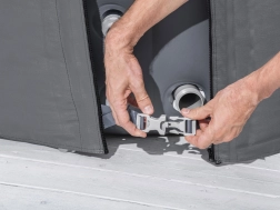 Je plaatst de hoes eenvoudig over de bubbelbad en dankzij de praktische details is er snelle toegang tot de bediening en is het onderhoud moeiteloos.