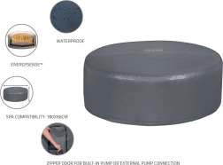 De compatibiliteit met ronde bubbelbaden met een diameter van 180 cm en een hoogte van 66 cm maakt het een ideale accessoire voor veel LAY-Z-SPA-modellen. Het praktische ontwerp maakt eenvoudig plaatsen en verwijderen mogelijk en biedt toegang tot het bedieningspaneel.
