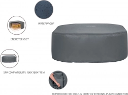 Het duurzame DuraPlus‑materiaal is ontwikkeld voor langdurig buitengebruik – het is waterbestendig, vormvast en eenvoudig te onderhouden. De praktische ritsopening maakt het mogelijk om een ingebouwde of externe pomp aan te sluiten zonder de hoes te verwijderen, waardoor het onderhoud comfortabel en snel is.