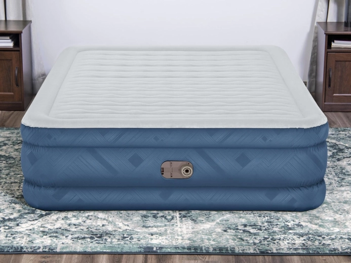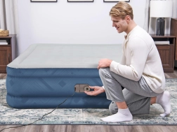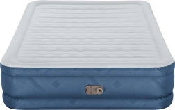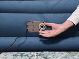 De geïntegreerde elektrische pomp van 220–240 V blaast het bed in ongeveer 3 minuten op. Er is ook een optie voor handmatig/voetmatig bijpompen buiten bereik van elektriciteit.