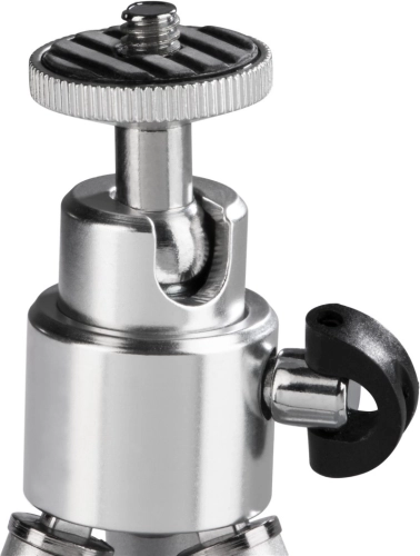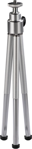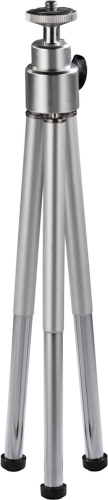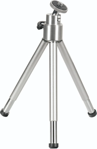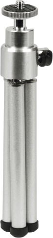 Compact en licht mini-statief in een elegante zilveren kleur met uitzonderlijke draagbaarheid en stabiele ondersteuning voor camera’s, videocamera’s, microfoons en miniluidsprekers. Dankzij de robuuste metalen constructie en antislipvoetjes zorgt het voor een haarscherp beeld zonder vervagen, zelfs op oneffen oppervlakken.