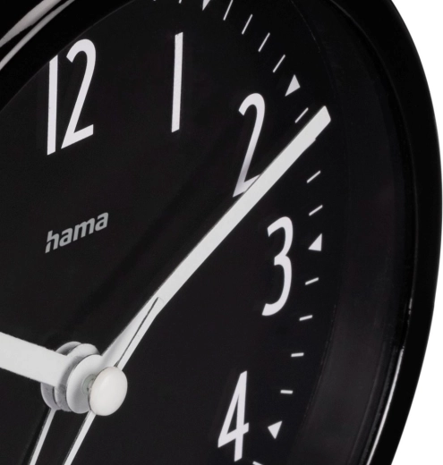 De Hama Skye is een stijlvolle analoge wekker met een zwarte, goed leesbare wijzerplaat en grote witte cijfers, die perfect past in zowel moderne als klassieke interieurs. Het stille mechanisme met een soepel lopende secondewijzer elimineert storend getik en zorgt voor een ongestoorde slaap.