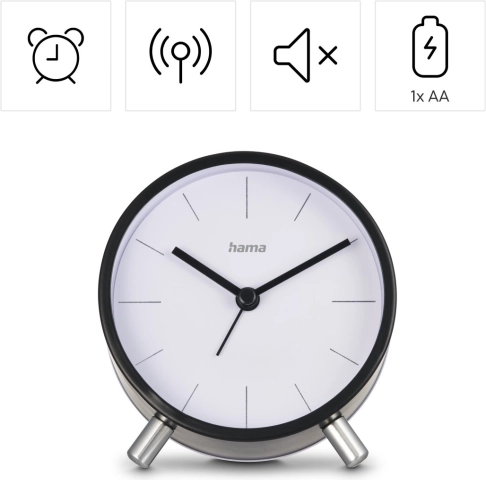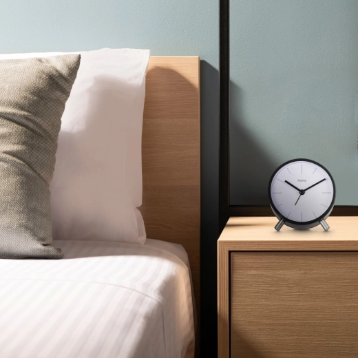 De elegante Flores-wekker in het zwart combineert een tijdloze look met betrouwbare functionaliteit. Dankzij de heldere witte wijzerplaat, contrasterende wijzers en duidelijke indexen is de tijd uitstekend afleesbaar, ook van grotere afstand. De minimalistische behuizing op stabiele metalen pootjes staat stijlvol in slaapkamer, kantoor of woonkamer.