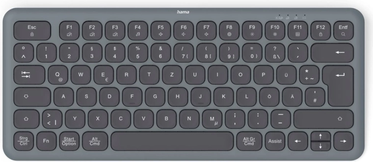 Het Hama WK-500 toetsenbord ondersteunt verbindingen via USB en Bluetooth, wat zorgdraagt voor eenvoudige integratie met meerdere apparaten.
