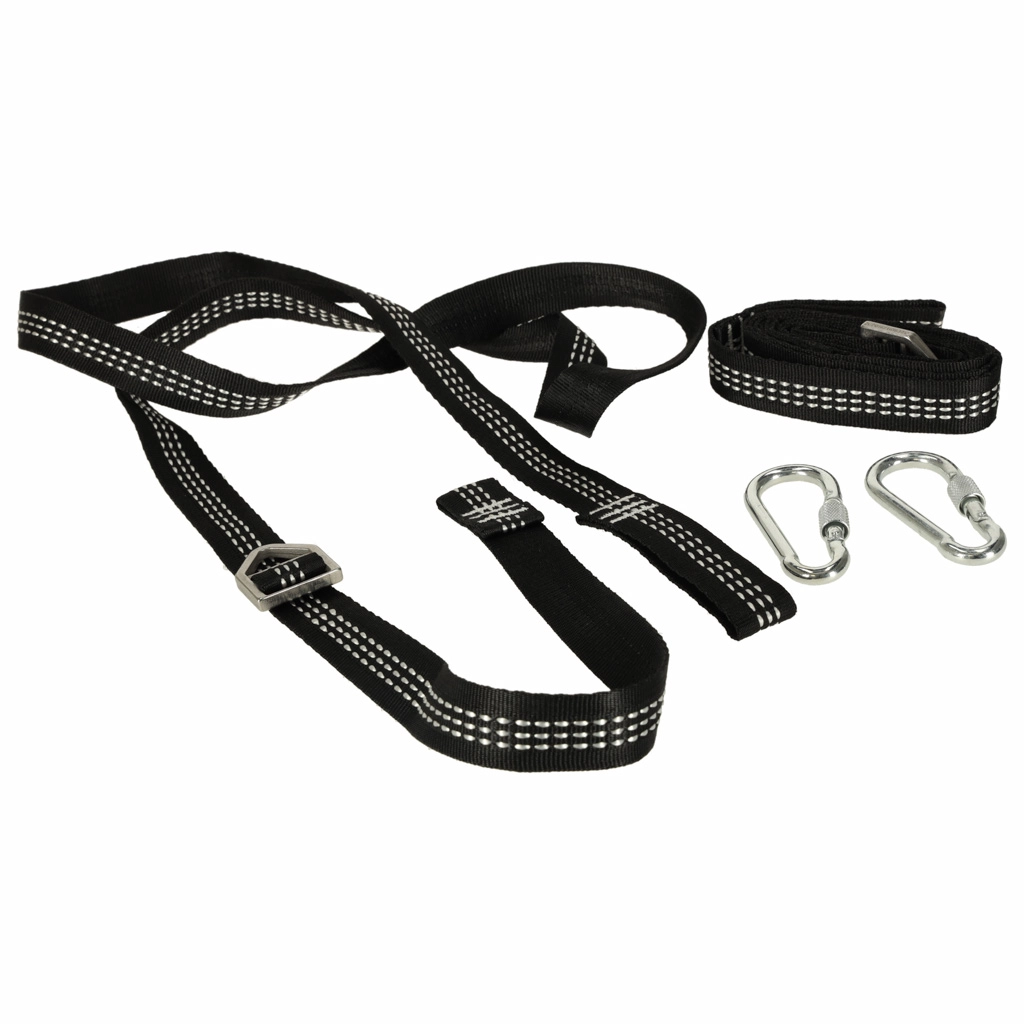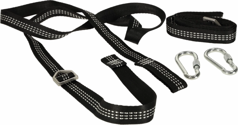Twee riemen van 2 meter van duurzaam polyester bieden stabiliteit en een draagvermogen tot 300 kg.