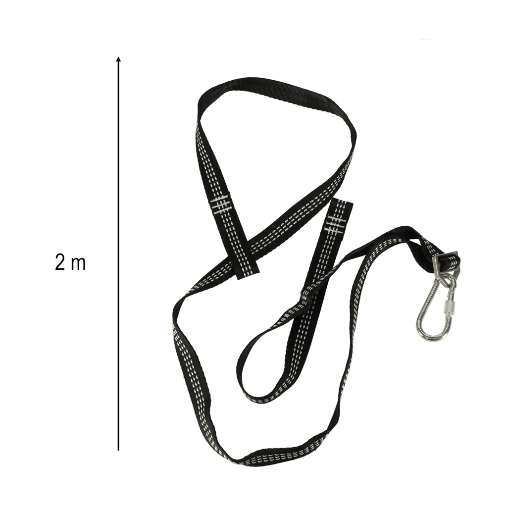 De ideale montageset voor alle liefhebbers van schommelen, geschikt voor gebruik in de tuin, op het terras of binnenshuis. De set bevat twee zeer duurzame riemen van 2 meter en twee karabijnhaken met een maximaal draagvermogen van 300 kg. Dit zorgt voor stabiliteit en veiligheid, zelfs bij intensief gebruik.