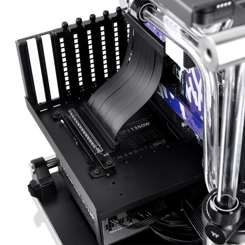 De Thermaltake PCI-E 4.0 kabel met verticaal montageontwerp en een lengte van 130 mm is ideaal voor de meest veeleisende gamingsystemen. Hij ondersteunt een breed scala aan GPU-oplossingen dankzij functies zoals een dubbele 90° hoek, hoge overdrachtssnelheid en EMI-afscherming.