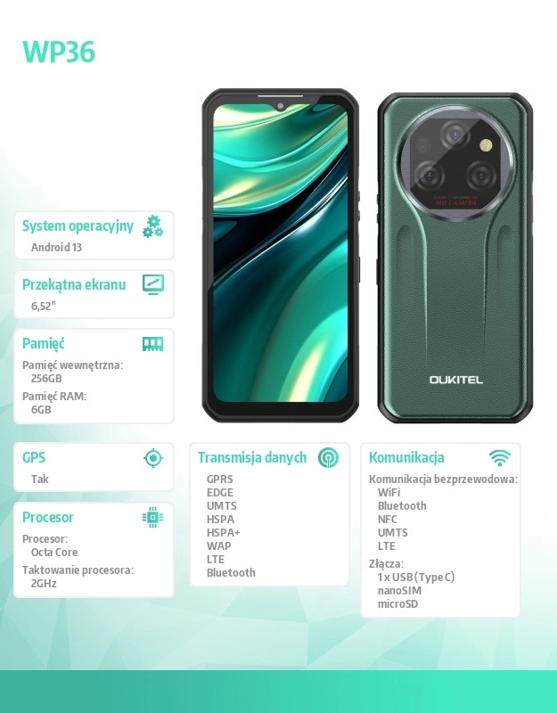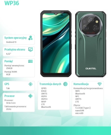 De Oukitel WP39 heeft een groot 6,6" IPS-display met een resolutie van 2408 x 1080 pixels, dat een scherp en helder beeld biedt, zelfs in zonlicht. Binnenin vindt u de octa-core MediaTek Dimensity 6100+ processor, die samen met 6 GB RAM zorgt voor vloeiende prestaties en meer dan genoeg kracht voor al uw apps. Het interne geheugen van 256 GB biedt ruime opslag voor uw bestanden en media.