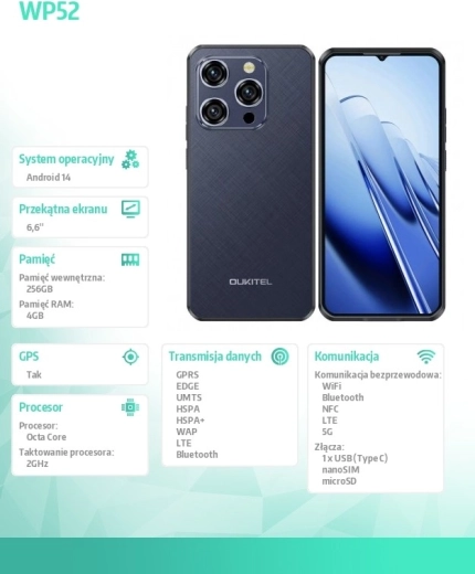 De Oukitel WP52 5G is een smartphone die zelfs de meest extreme omstandigheden aankan. Ontworpen voor duurzaamheid, biedt hij een 6,6" IPS-display met een resolutie van 1612 x 720 pixels, beschermd door Corning Gorilla Glass 5. Hierdoor is het scherm zeer goed bestand tegen krassen en stoten.