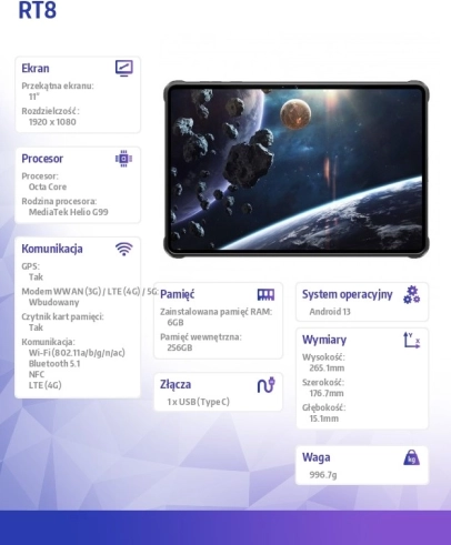 Met de MediaTek Helio G99-processor, 6 GB RAM en 256 GB interne opslag levert de tablet vlotte en efficiënte prestaties voor alle taken.