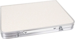 Ingeklapt verandert de tafel in een dunne koffer met handgreep, die u eenvoudig in de kofferbak van een auto of caravan opbergt.