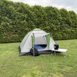 De tafel klapt u binnen 10 seconden uit – open het blad, schuif de poten uit en vergrendel ze. Met afmetingen van 60 × 40 × 26 cm krijgt u een compacte maar functionele oppervlakte voor koken, serveren en spelletjes in de tent. Het lage gewicht van 1,15 kg en de inklapbare constructie besparen ruimte in auto, kast of caravan.