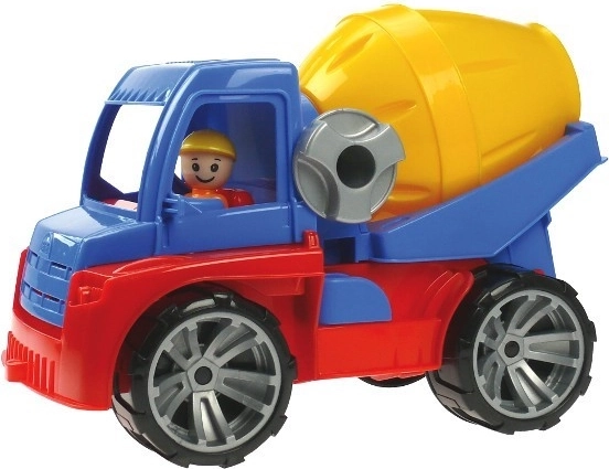 Kleurige LENA TRUXX betonmixer van duurzaam kunststof voor kinderen vanaf 3 jaar. Hij is volledig mechanisch functioneel, heeft een kantelbare cabine met actieve figuur en een vergrendeling tegen onbedoeld kippen. Voldoet aan de EU‑veiligheidsnormen en kan ook tegen wat ruiger spel, zowel binnen als in de tuin.
