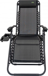 Het robuuste metalen frame met poedercoating is bestand tegen corrosie en weersinvloeden. De ligstoel is snel inklapbaar, neemt weinig ruimte in en is gemakkelijk te vervoeren. Het praktische zij-afzetplankje biedt plaats aan een drankje, telefoon en kleinigheden, zodat u alles bij de hand heeft.