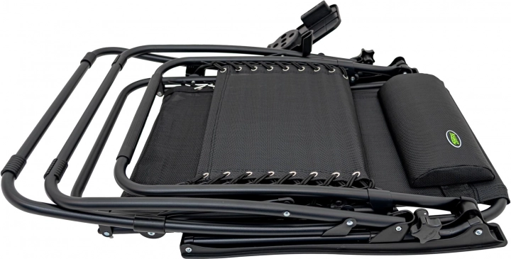 De ligstoel wordt versteld met uw lichaamsgewicht – van zitstand tot bijna horizontaal. Zodra u de ideale hoek heeft gevonden, vergrendelt u deze eenvoudig met de praktische blokkering.