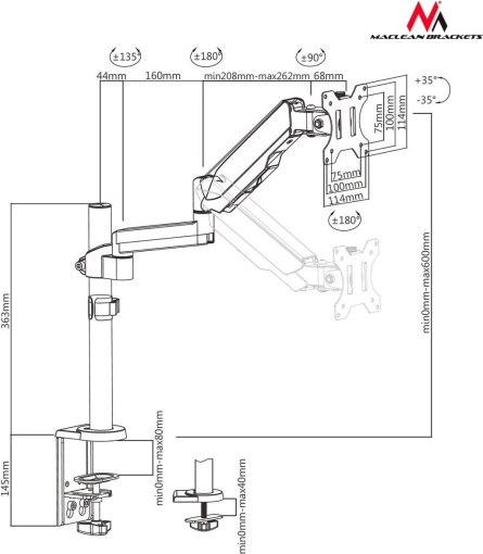Stabiliteit en kwaliteit: Gemaakt van hoogwaardige materialen zoals staal en spuitgegoten aluminium, de houder biedt een veilige ondersteuning voor uw monitor.