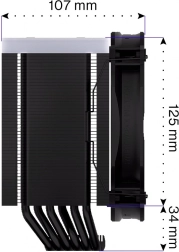 - Beste koelprestaties: De dicht geribbelde heatsink met zes heatpipes voert warmte effectief af van de processor. Geoptimaliseerd voor een unidirectionele luchtstroom en levert zo de beste koeling in zijn klasse.