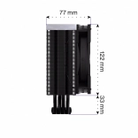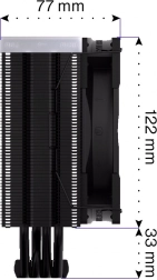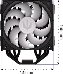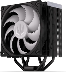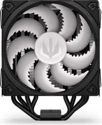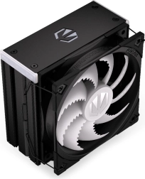 ENDORFY Fera 5 Black ARGB is een compacte en krachtige luchtkoeler, ontwikkeld in samenwerking met Synergy Cooling voor de beste verhouding tussen prestatie en geluidsniveau. Dichte lamellen, een asymmetrisch koelblok en vier koperen heatpipes met direct contact met de IHS van de processor voeren warmte effectief af, zelfs bij hoge belasting, terwijl de geoptimaliseerde eenrichtingsluchtstroom de koel-efficiëntie verhoogt.