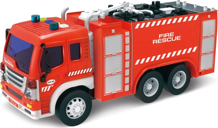 Geniet van realistisch spel met deze brandweerauto die is uitgerust met een spuit en effecten die een authentieke ervaring bieden. De auto is 28 cm lang en aangedreven door een vliegwiel, wat beweging vergemakkelijkt zonder constant op knoppen te hoeven drukken.