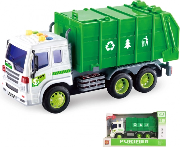 Vuilniswagen met effecten, grootte 28 cm. Licht- en geluidseffecten, 3xAG13 batterijen inbegrepen.