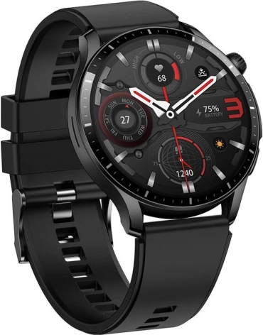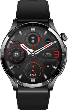 1,45-inch Retina IPS-display met hoog contrast en kleurverzadiging biedt snelle toegang tot instellingen. Het horloge biedt tot 7 dagen gebruik en waterdichtheid IP67.