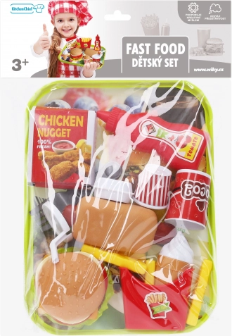 De Speelset Fastfood met dienblad biedt leuk speelplezier met snacks. Het bevat verschillende soorten eten en bestek voor kleine chef-koks.