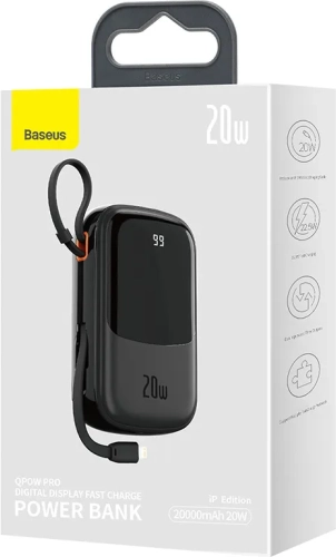 De Baseus Qpow Pro powerbank is uitgerust met een ingebouwde Lightning-kabel en USB-C- en USB-poorten, waardoor gelijktijdig opladen van maximaal drie apparaten mogelijk is. Ondersteuning voor meerdere snellaadprotocollen garandeert snel en efficiënt opladen.