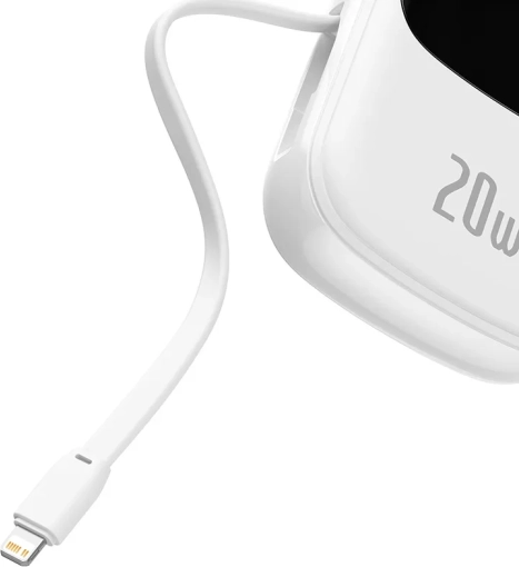 De Baseus Qpow Pro is een praktische en ruime powerbank uitgerust met een ingebouwde Lightning-kabel, USB-C- en USB-poort. Hij kan tot drie apparaten tegelijk van stroom voorzien met een uitgangsvermogen van 20W.