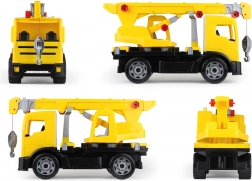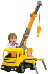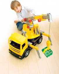 Mechanische wieltjes voor het uitschuiven en heffen van de giek en een lier met touw zorgen voor authentiek bouwplezier en ontwikkelen de motoriek.