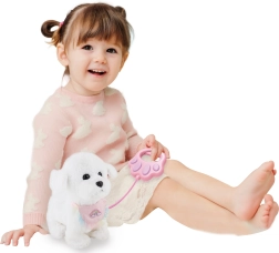 Deze zachte en knuffelige pluchen hond van 22 cm brengt kinderen veel vreugde dankzij realistische bewegingen en geluiden. De kabel met controller wordt aangesloten op de opening in de hals en maakt eenvoudige bediening van lopen en effecten mogelijk. Door de combinatie van aanraking, klappen en knoppen is het spel intuïtief en leuk.