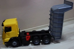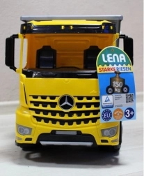 Deze kindersleepwagen Mercedes Giants Dump Truck biedt ongelooflijk veel plezier voor kinderen. Het AROCS-model is drieassig met een realistisch design, inclusief gele cabine, zwart chassis en zilveren kiepbak.