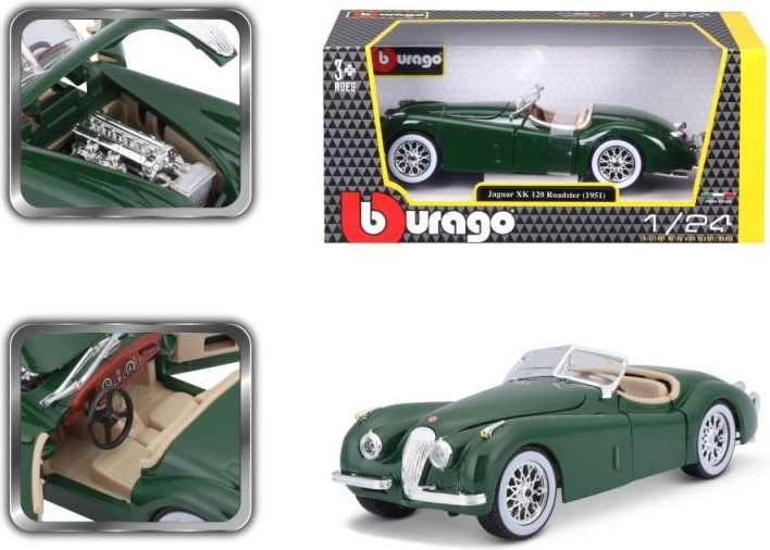 Vul je Bburago-collectie aan met meer geweldige automodellen op schaal 1:24. Metalen model uit de serie Bburago 1:24 Jaguar XK 120 Roadster (1951) groen