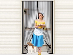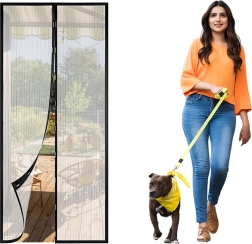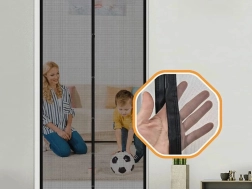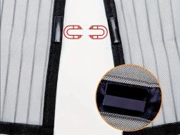 Bliksemsnelle montage en comfortabel gebruik – de hor wordt bevestigd met klittenband, zodat je hem zonder gereedschap installeert. De middelste delen sluiten automatisch met magneten, wat een comfortabele doorgang naar balkon of terras mogelijk maakt, zelfs met volle handen.